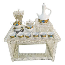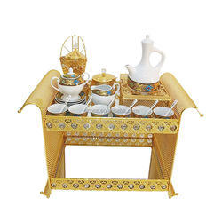 SET CONTENTS: Includes serving trays, ornate stands, and matching accessories designed for authentic coffee ceremonies